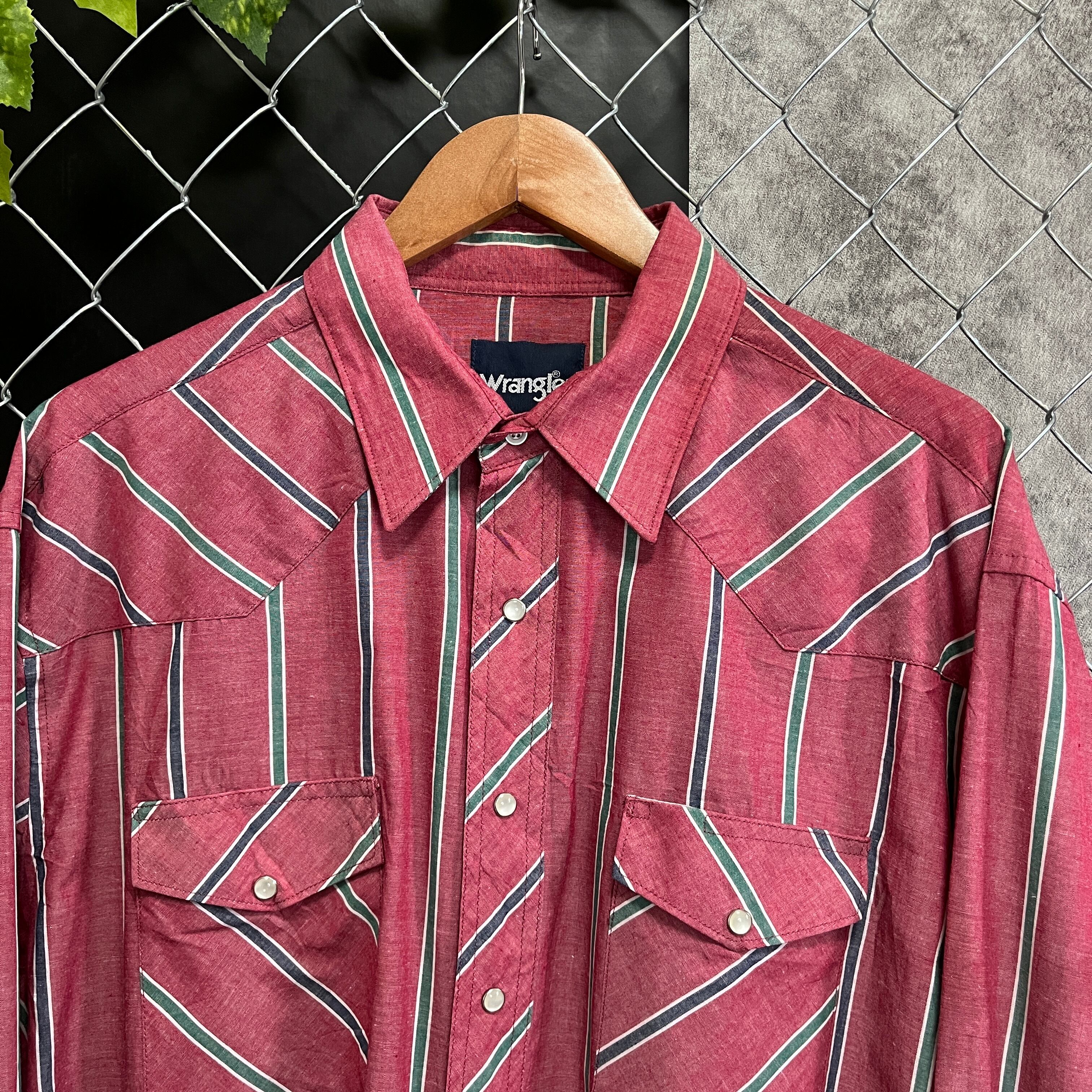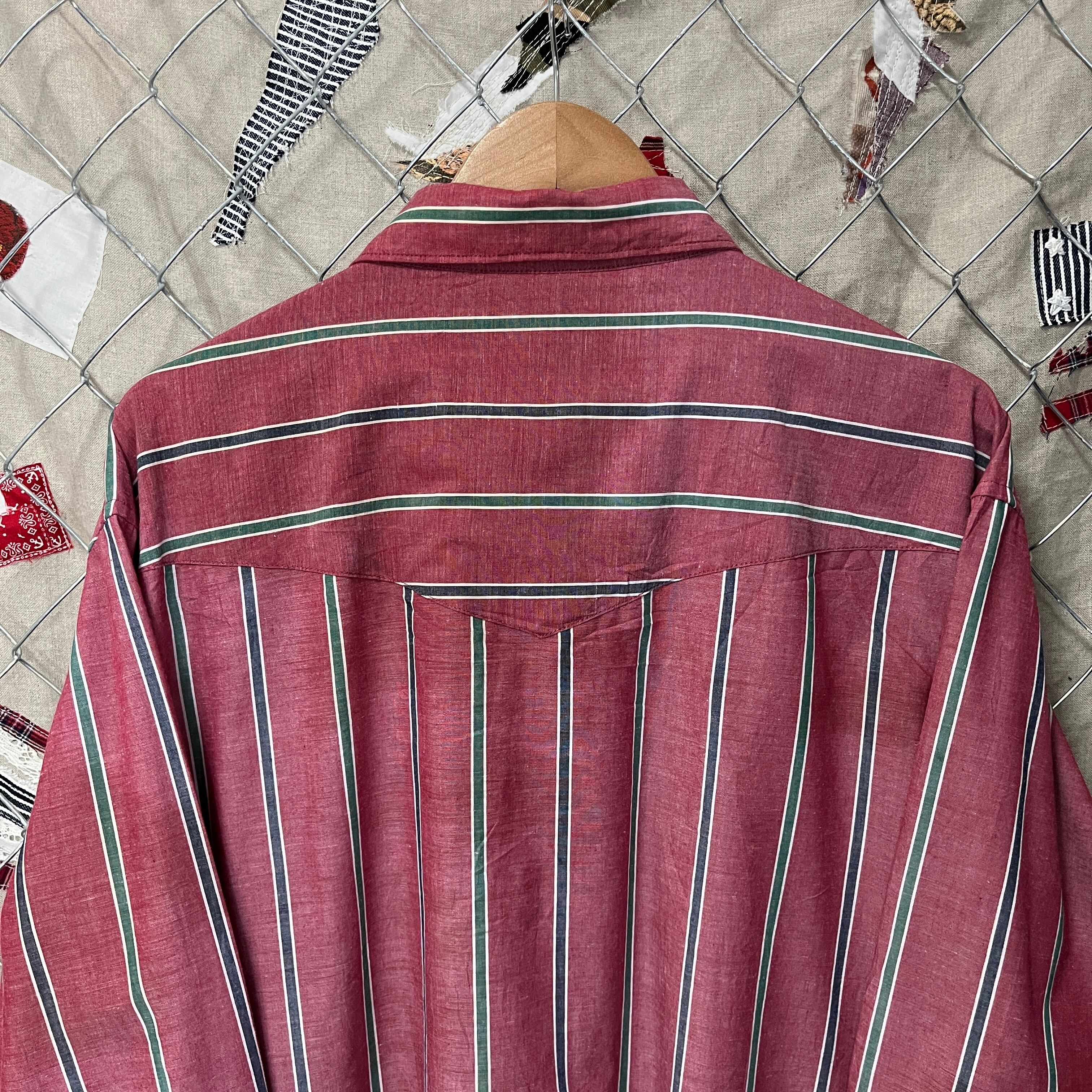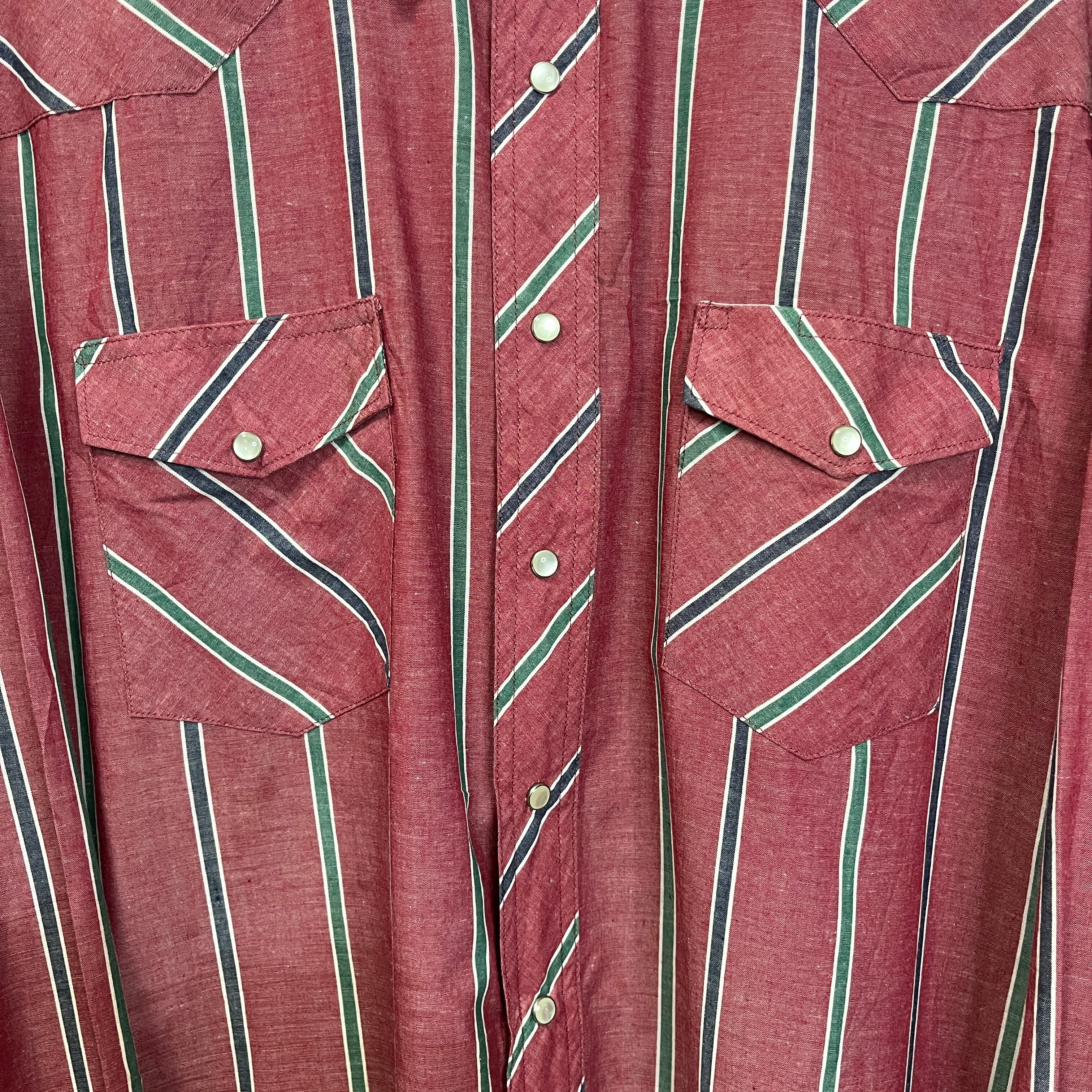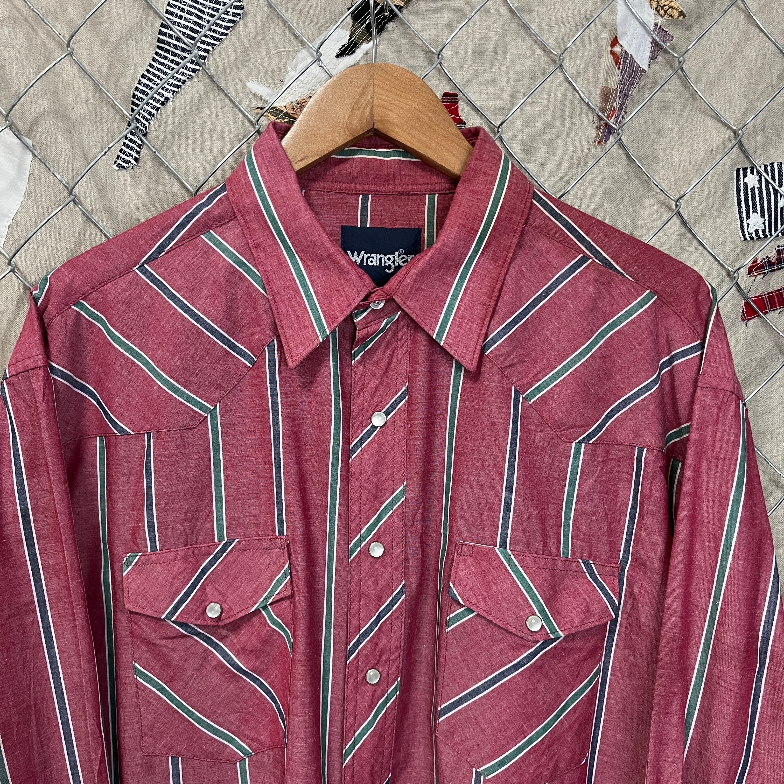 こちらの商品はWranglerのストライプシャツです。