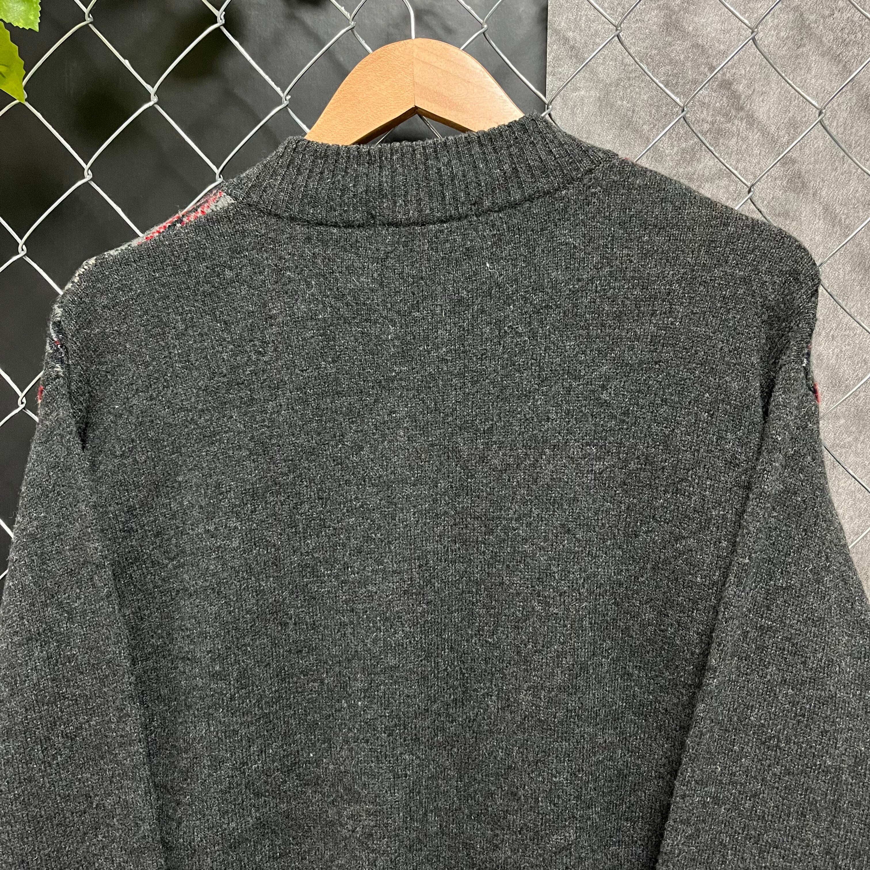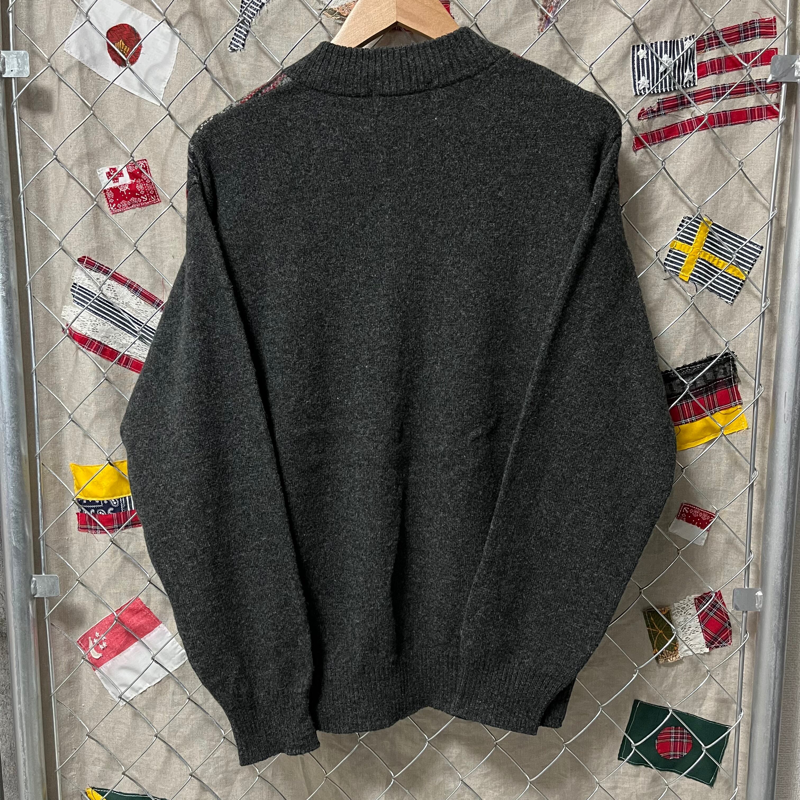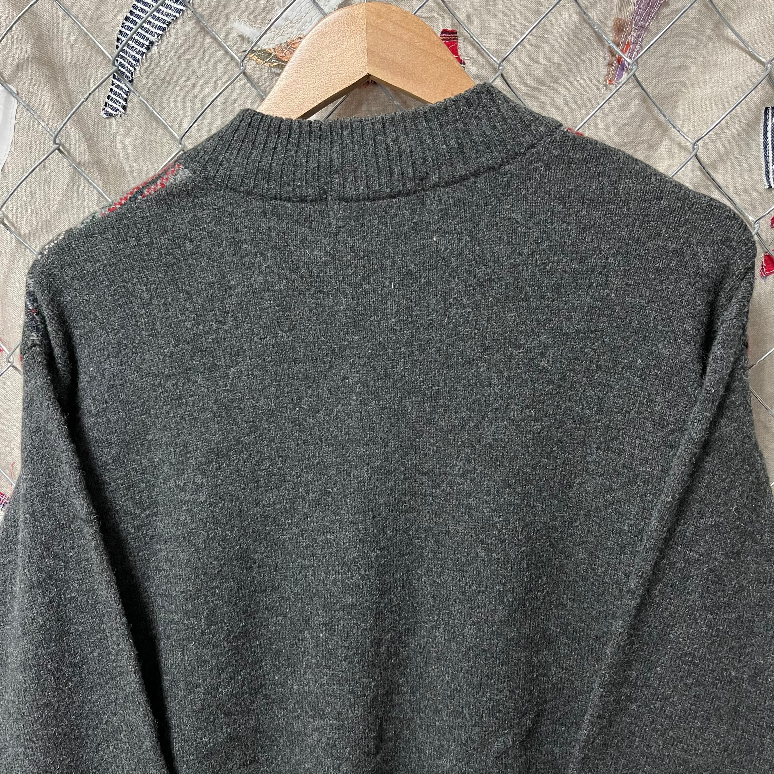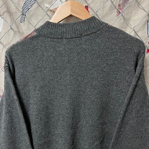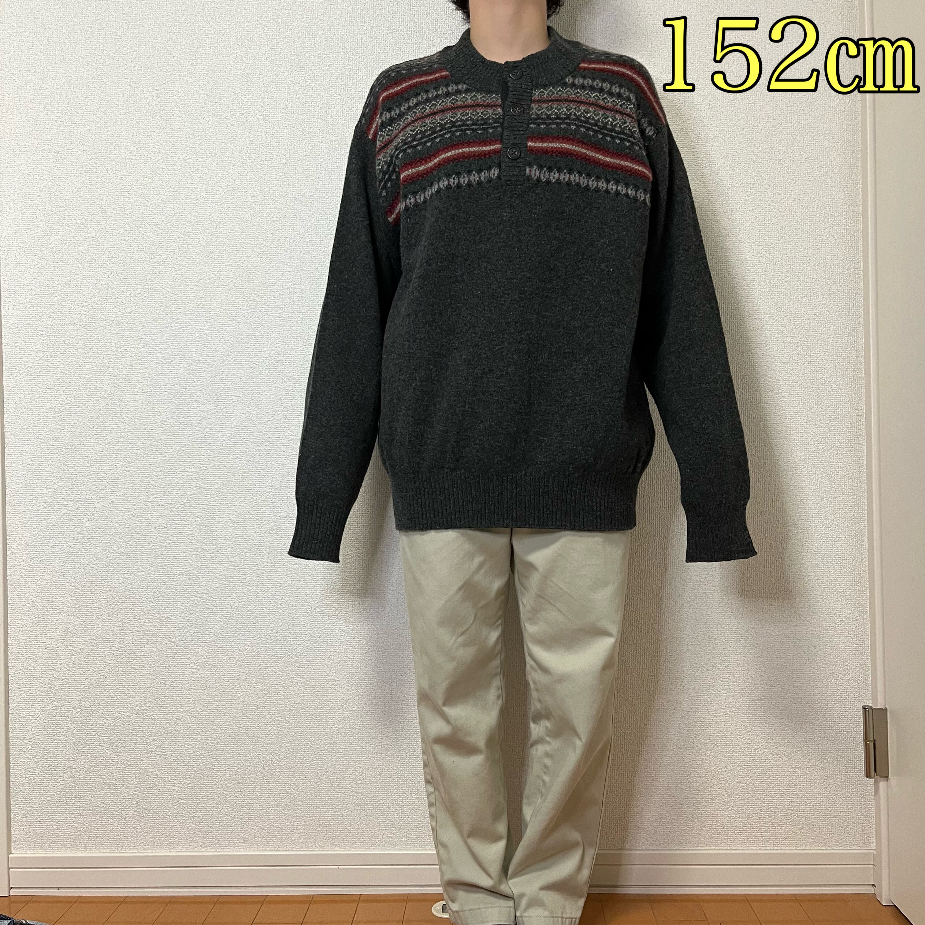ダークグレーの色目にカラフルなフェアアイル柄が映えていますね。落ち着いた大人っぽいアイテムです。暗めの色なのでカラーパンツやチノパンと相性抜群ですよ~!