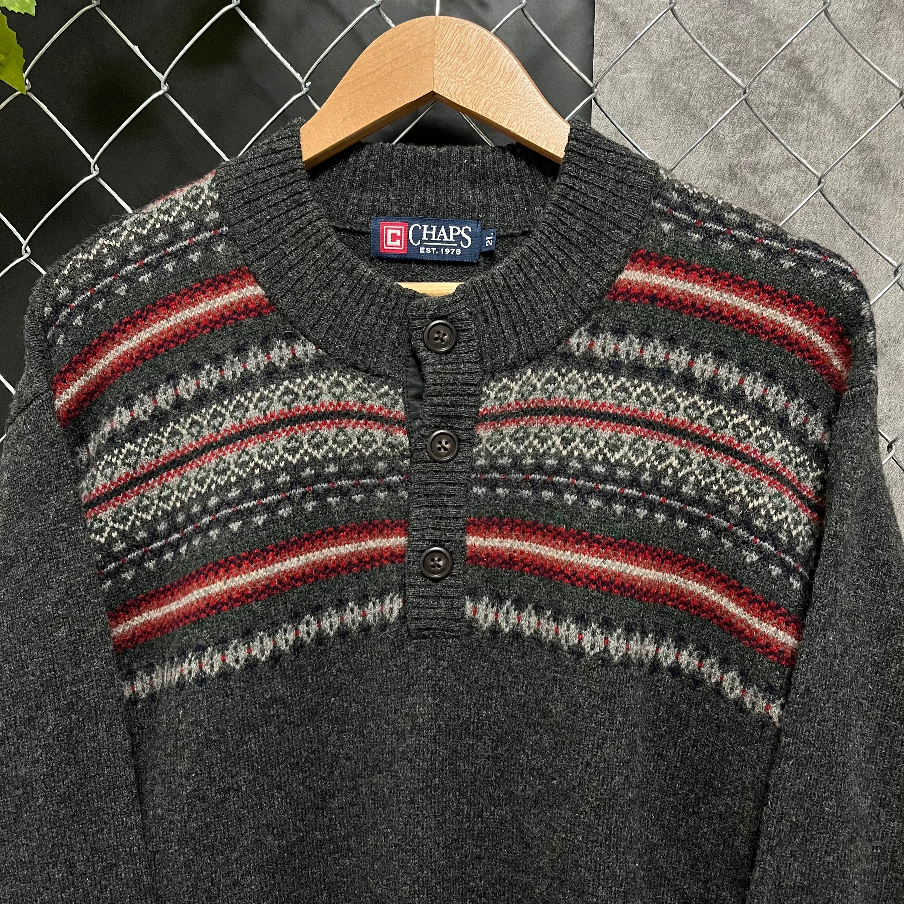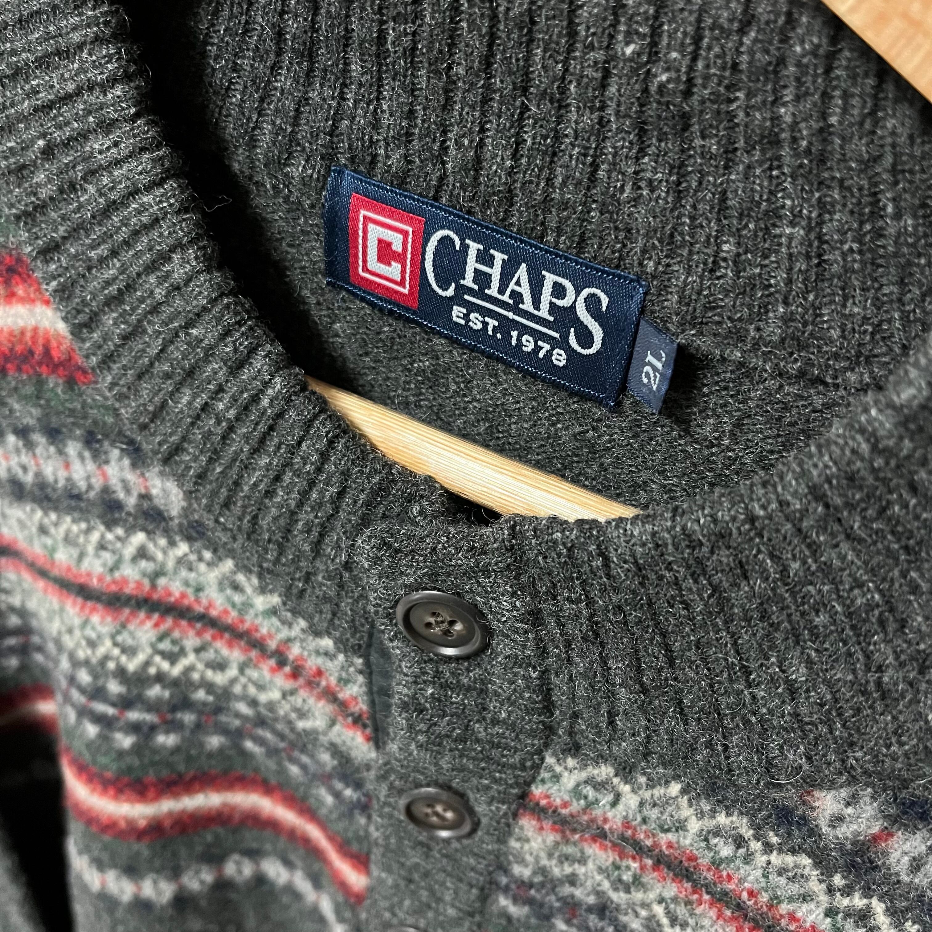 こちらの商品はCHAPSのハーフボタンニットです。