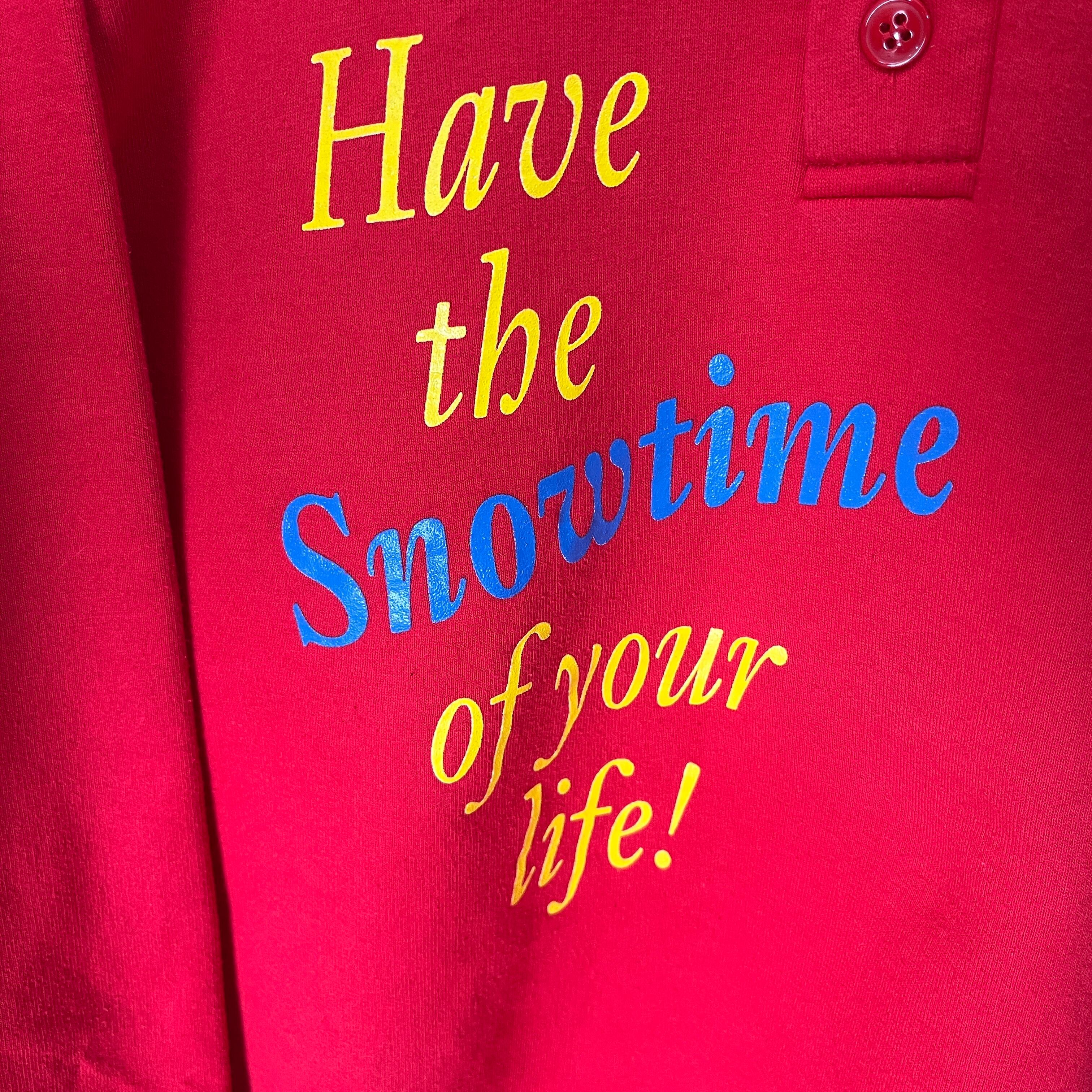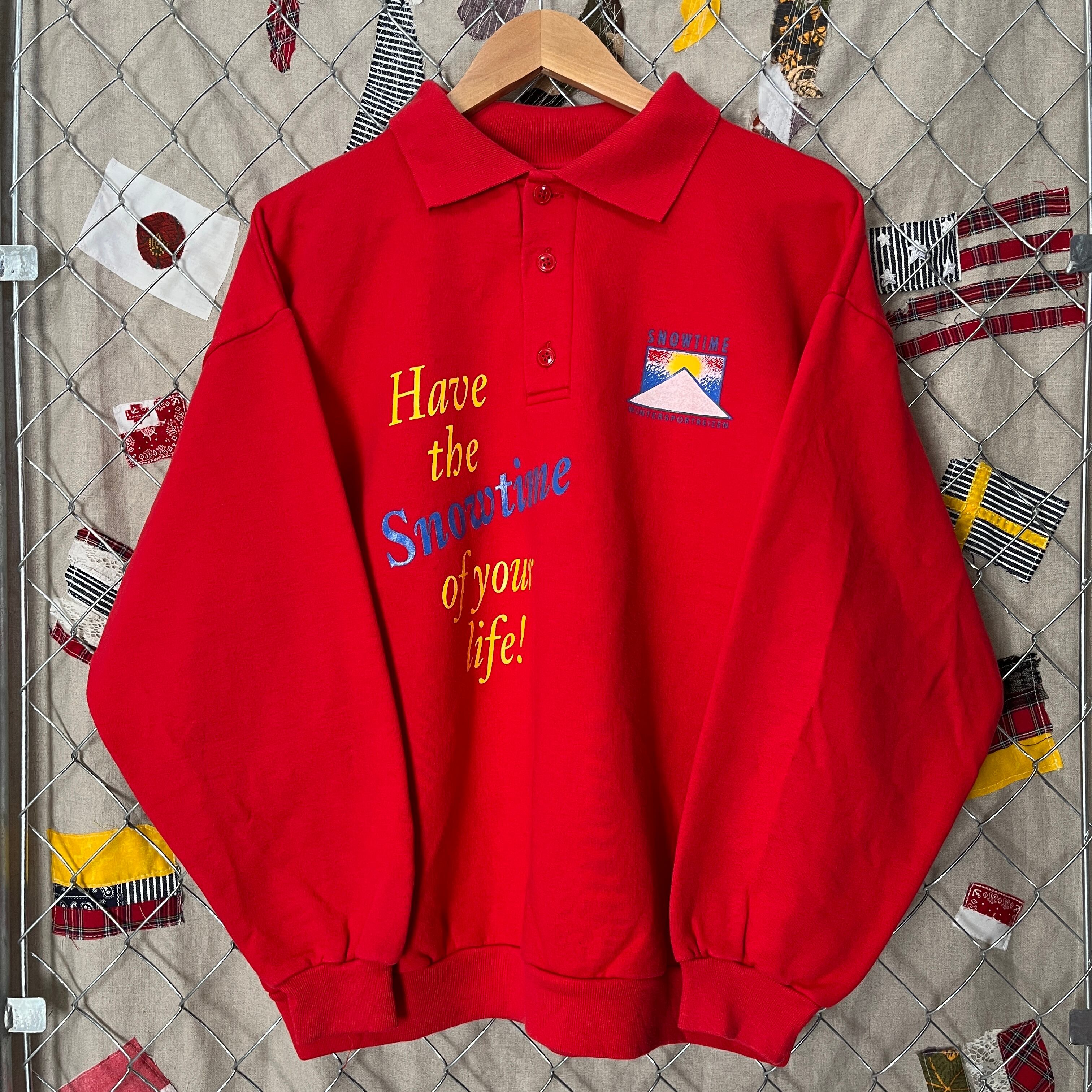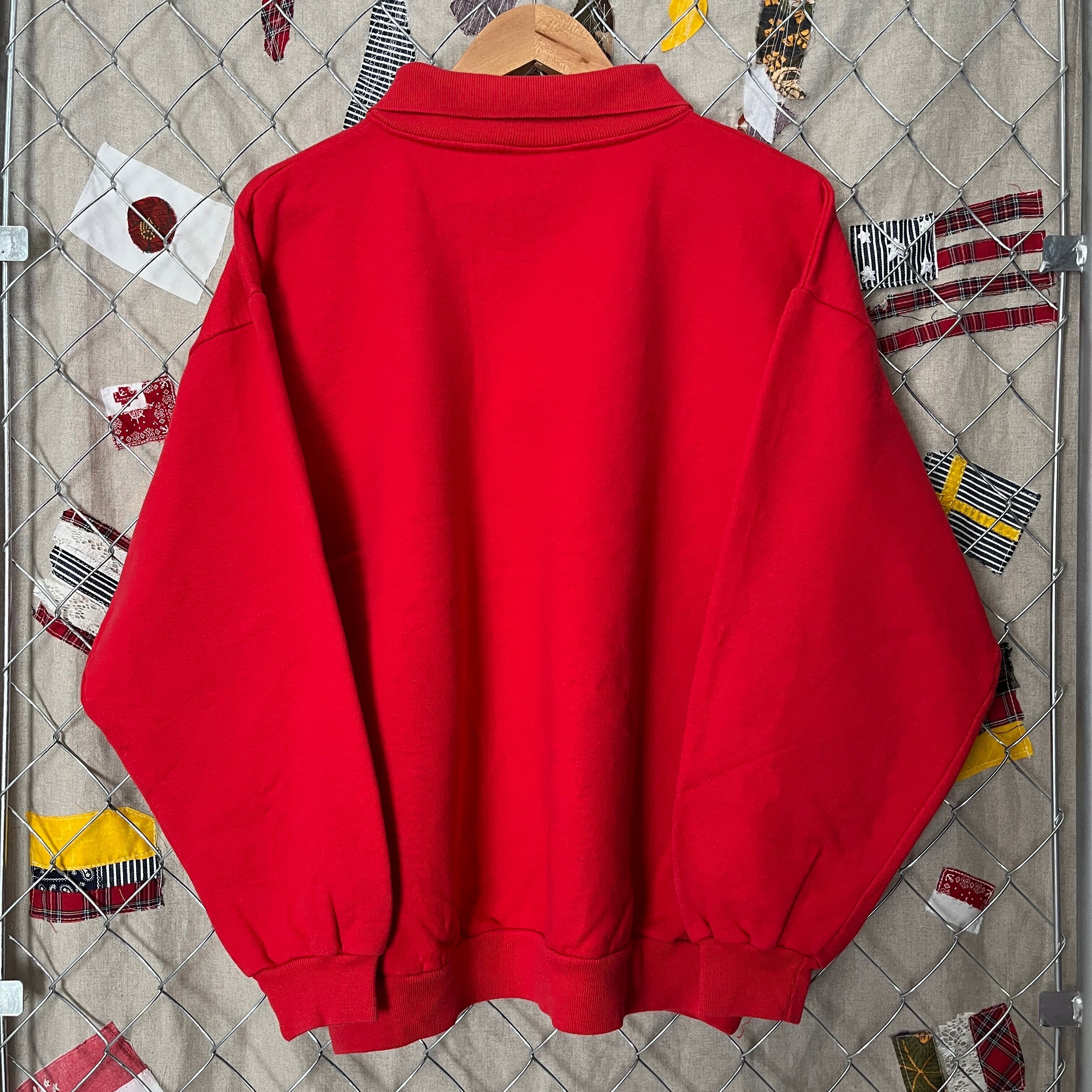長袖のポロシャツで鮮やかな赤色とプリントがかわいい1着です☻