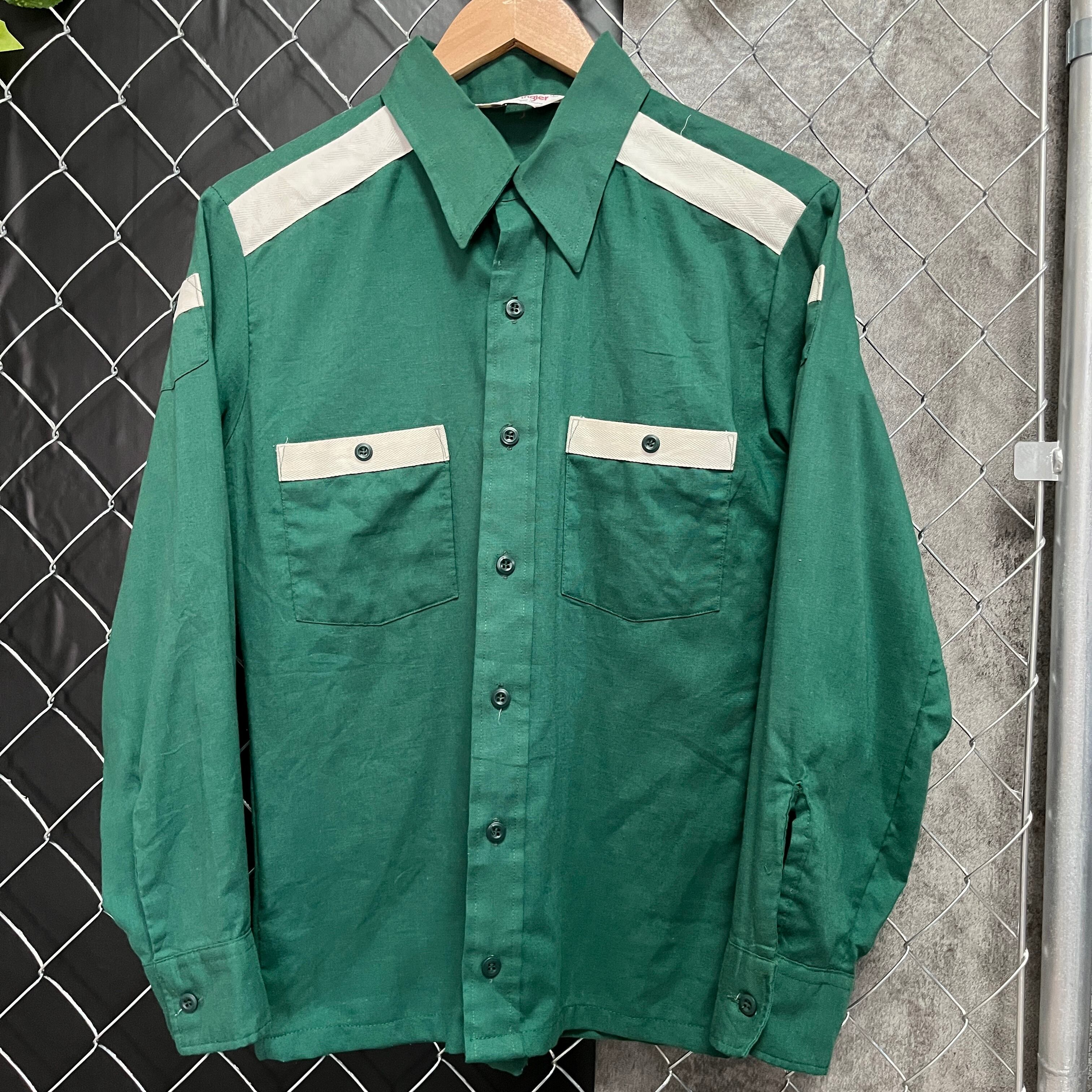 鮮やかな緑色のシャツで明るく元気な印象に☺︎