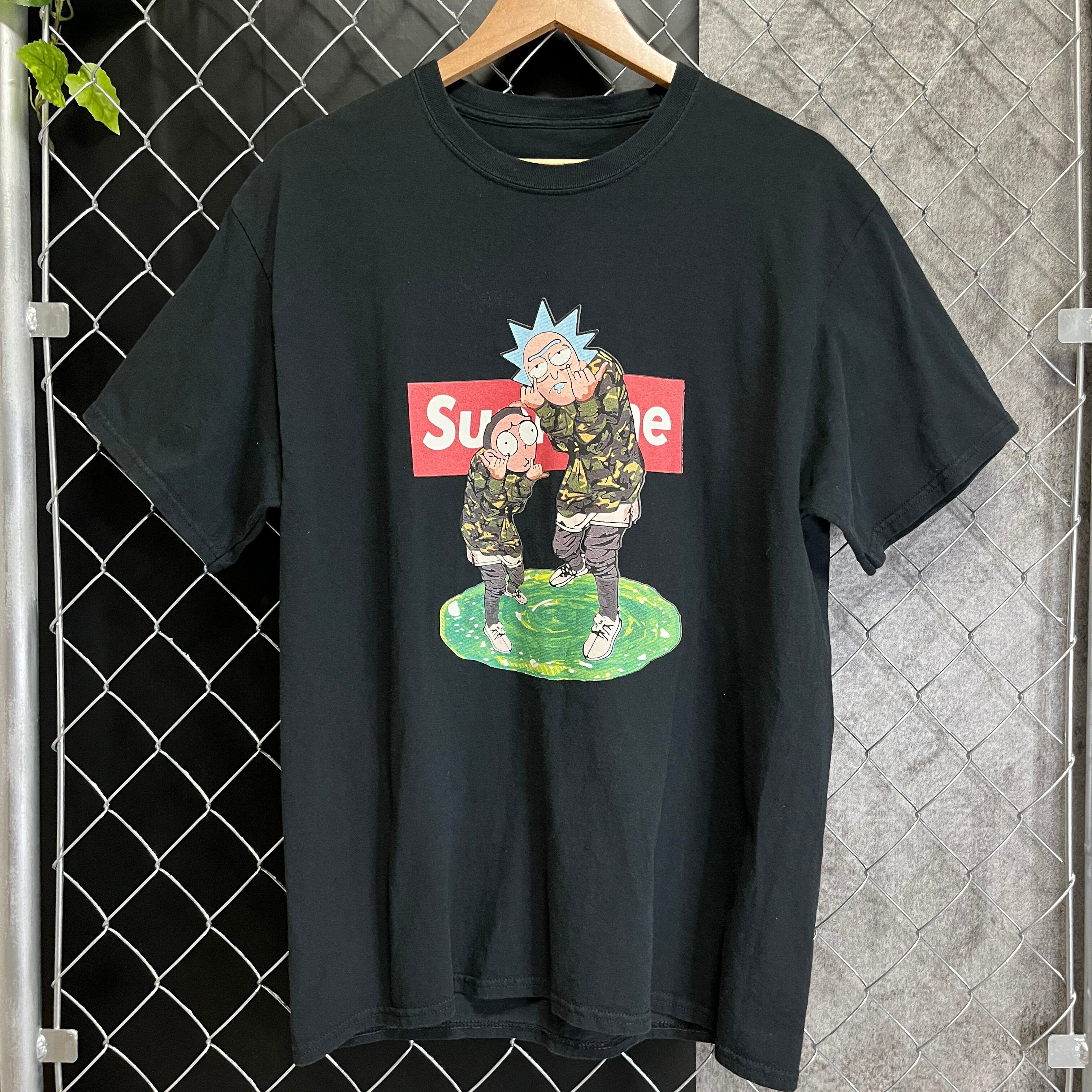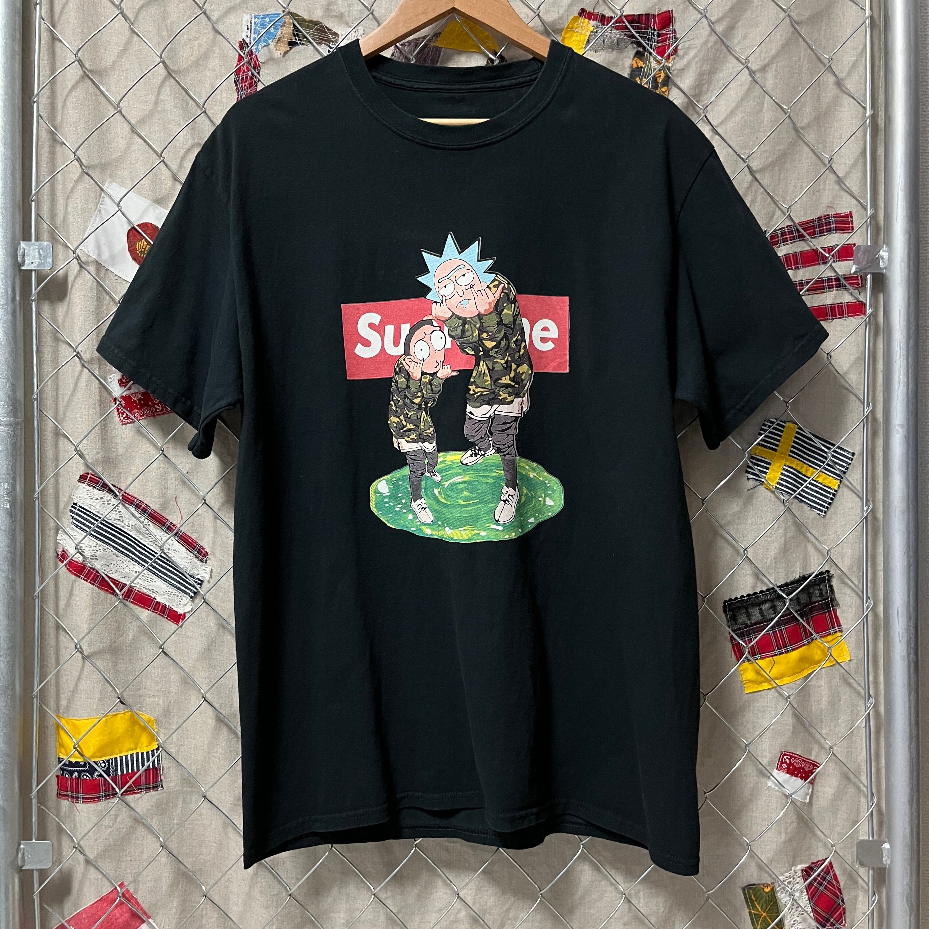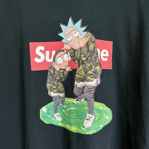Supremeの文字とキャラクターのポーズが特徴的でクールなデザインのTシャツ!