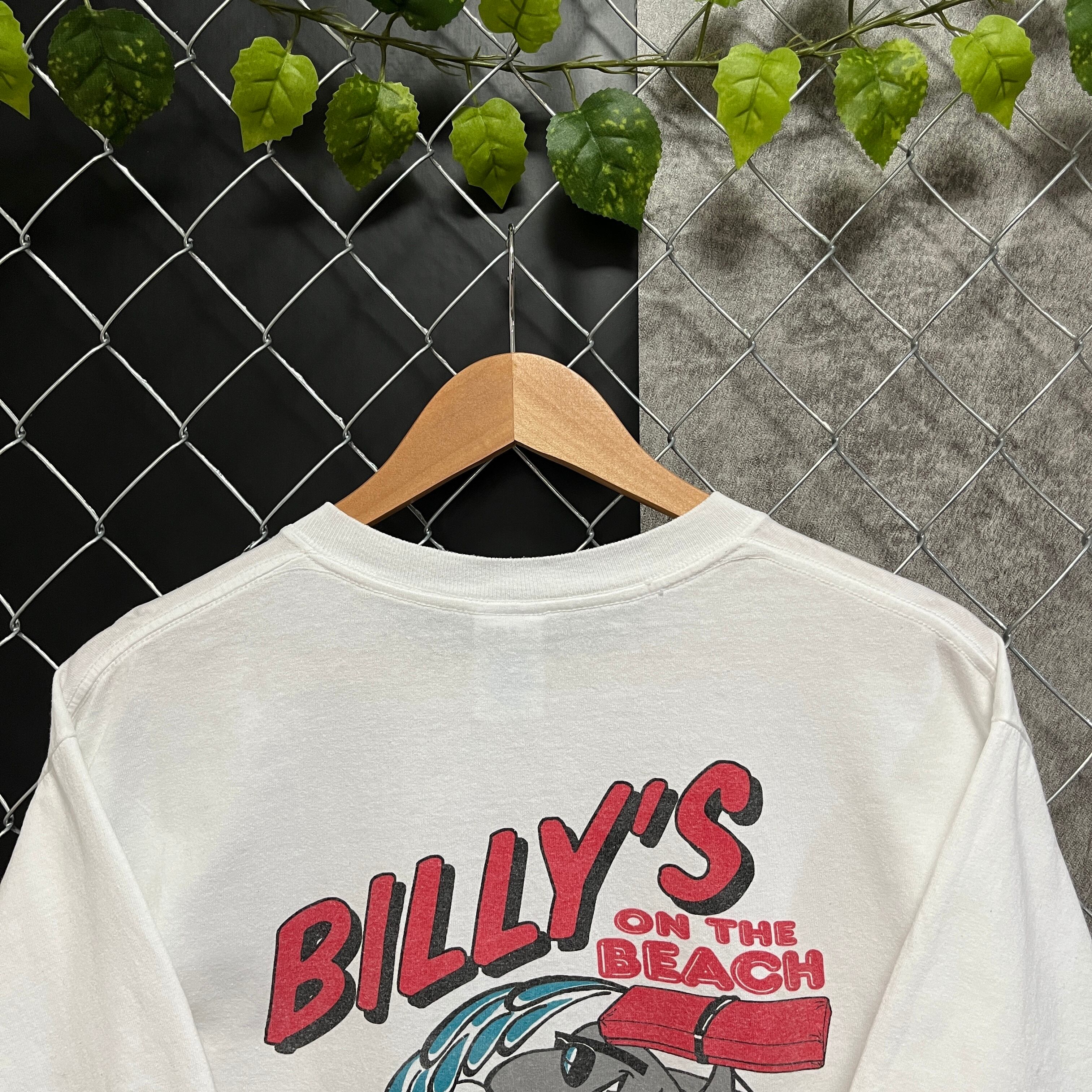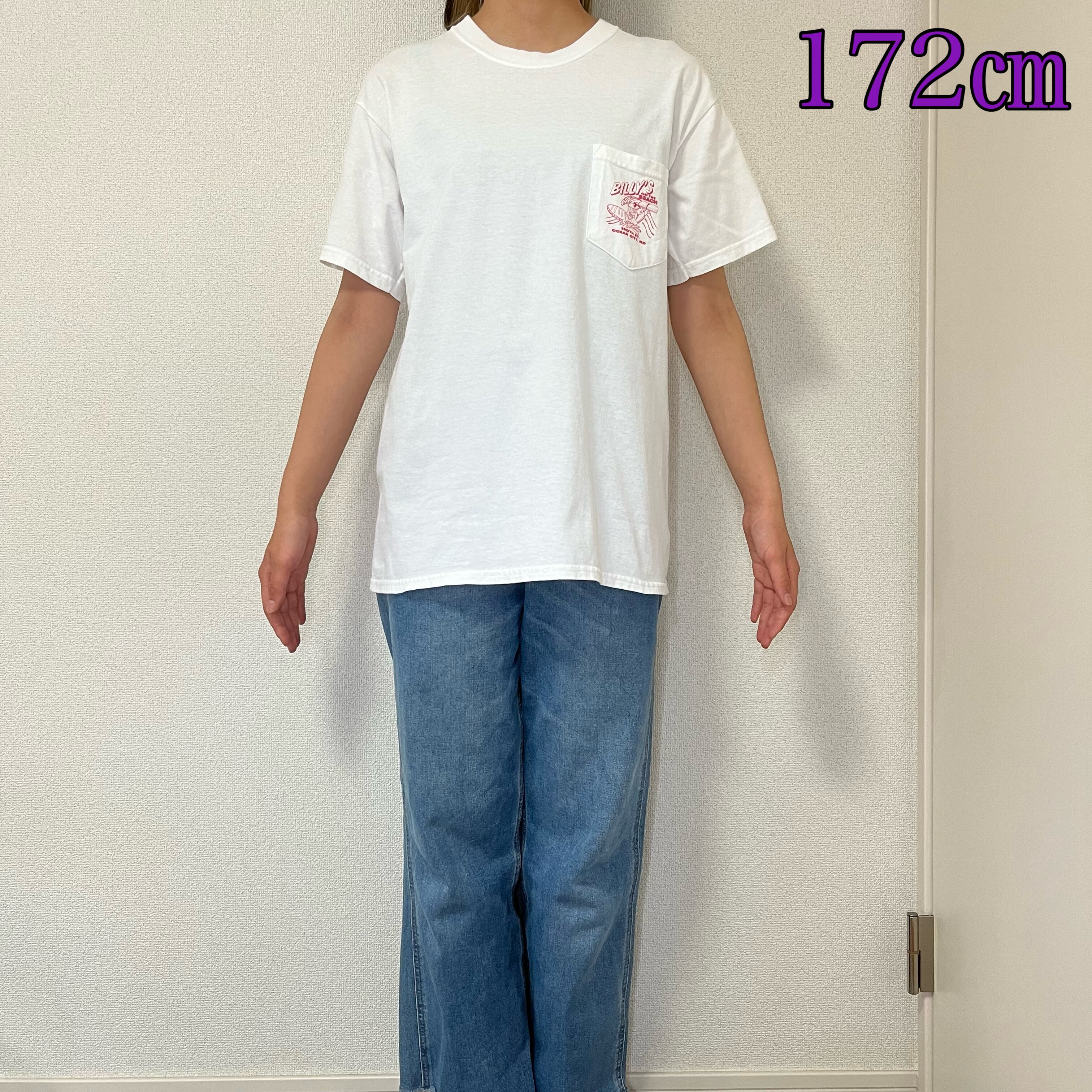 フロントは胸にポケットが付いていてレッドのみのシンプルなプリント、バックはカラフルでユニークなデザインがプリントされています。
