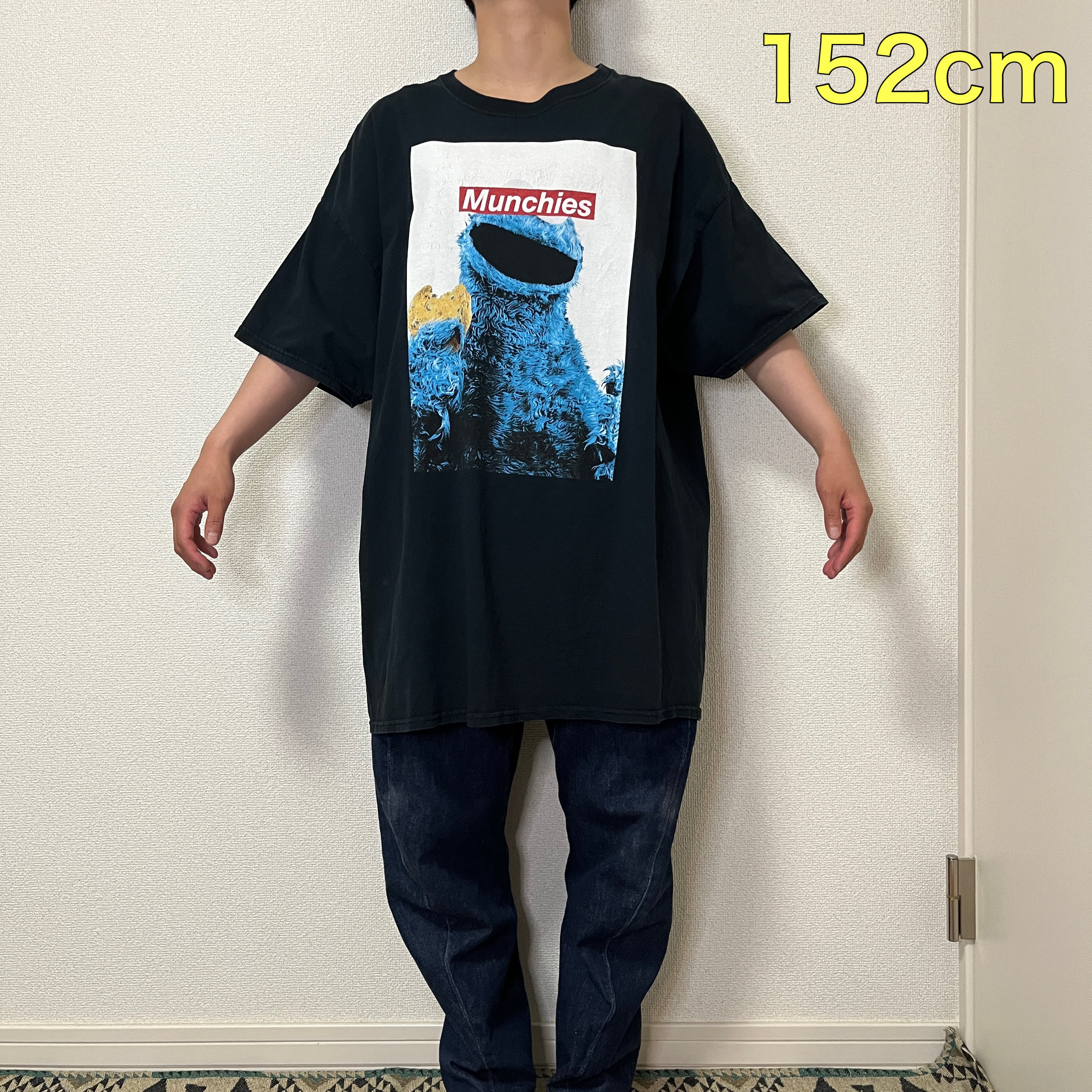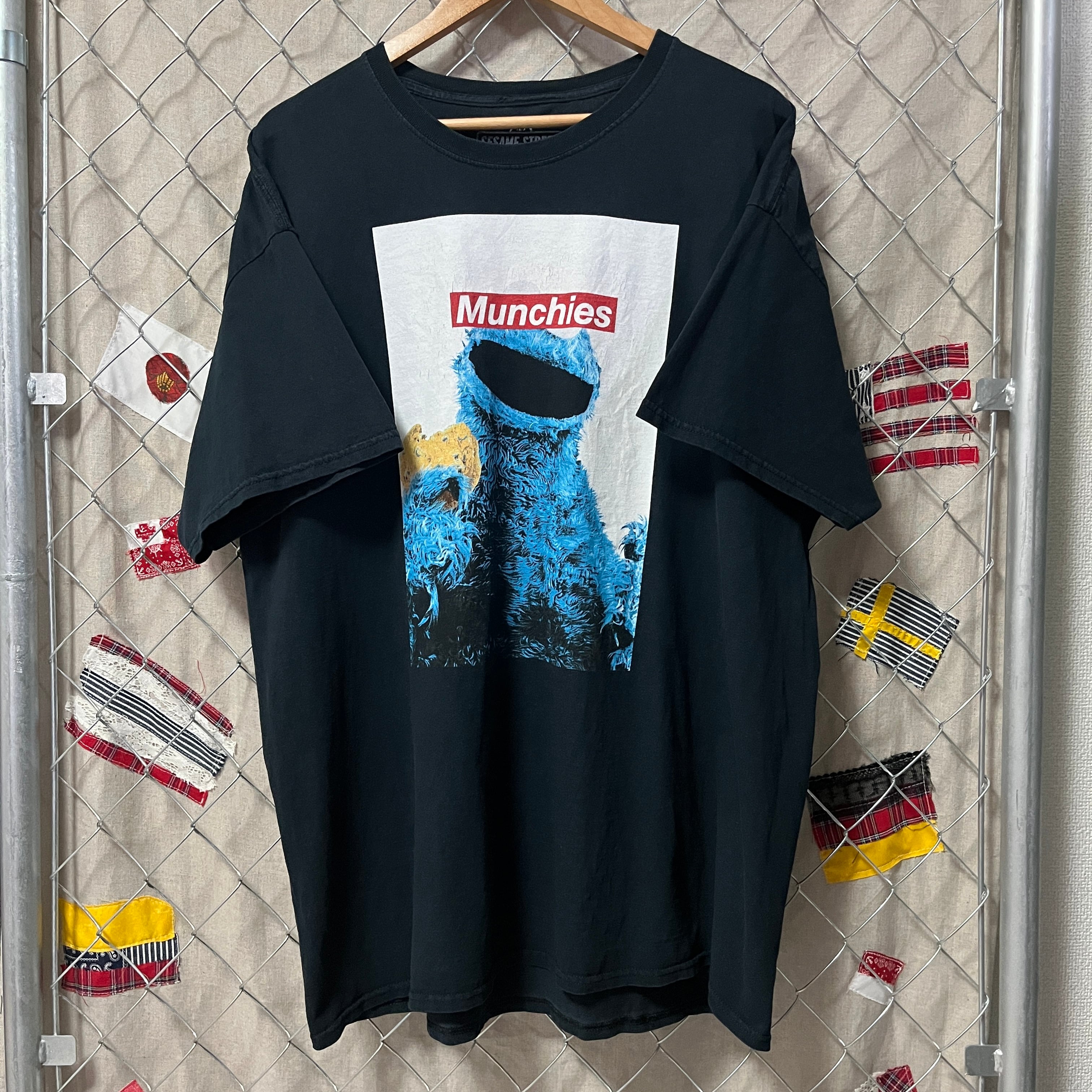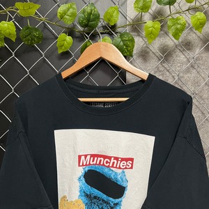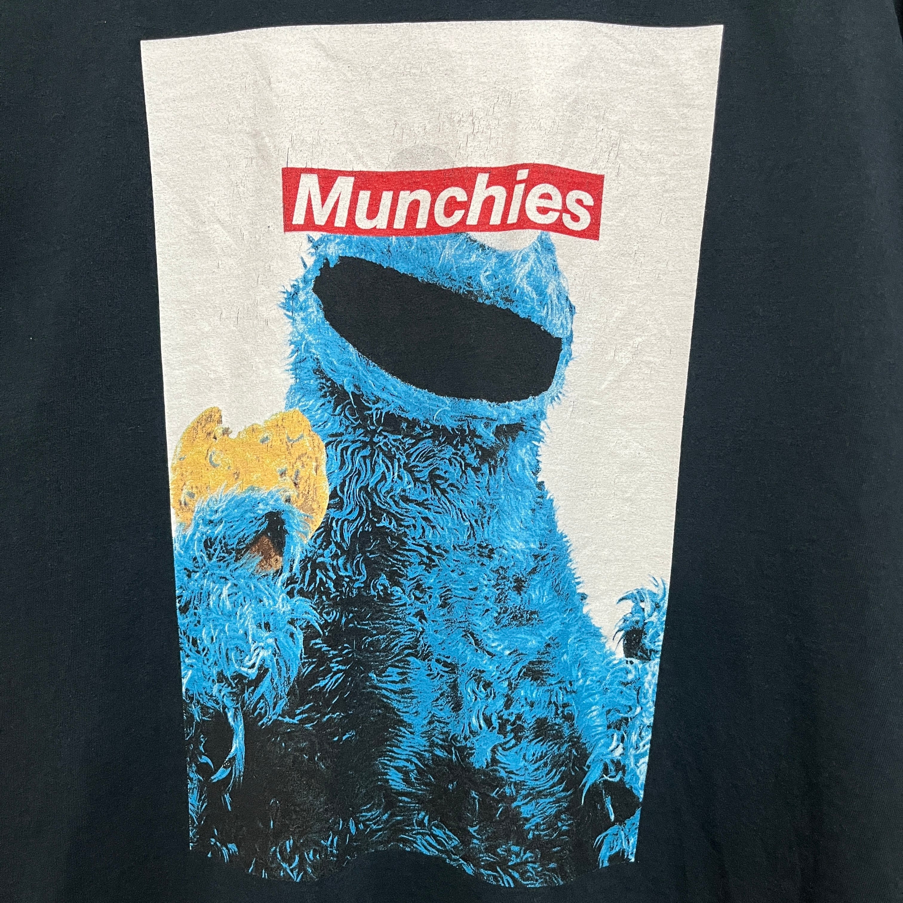 クッキーモンスターの目を隠すようにMunchies=スナック(お菓子)の文字が...