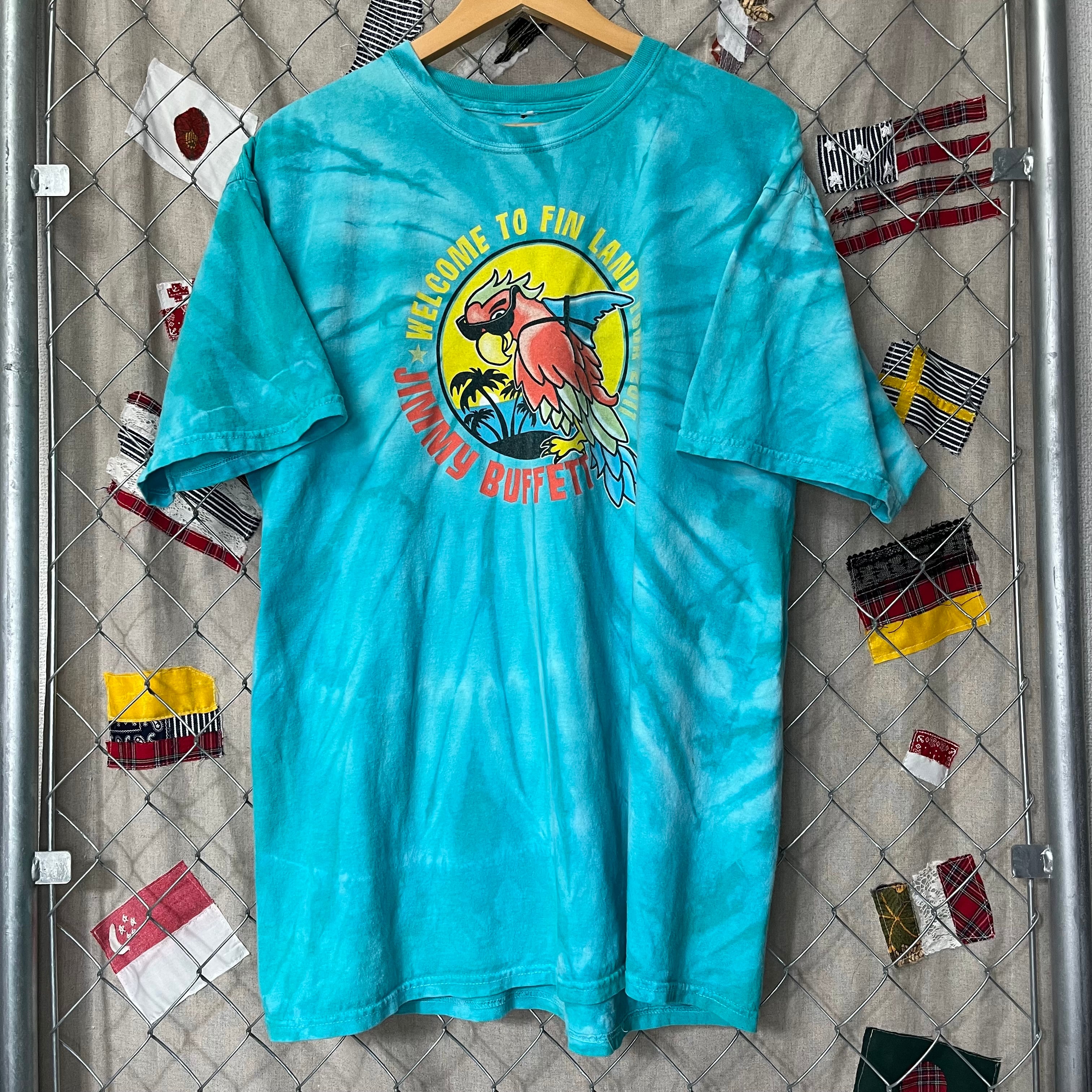 こちらの商品はJIMMY BUFFETTのバンドTシャツです。タイダイ柄とターコイズブルーの色目が爽やかな印象のアイテム。FIN LAND TOUR 2011のグッズです(๑>◡<๑)