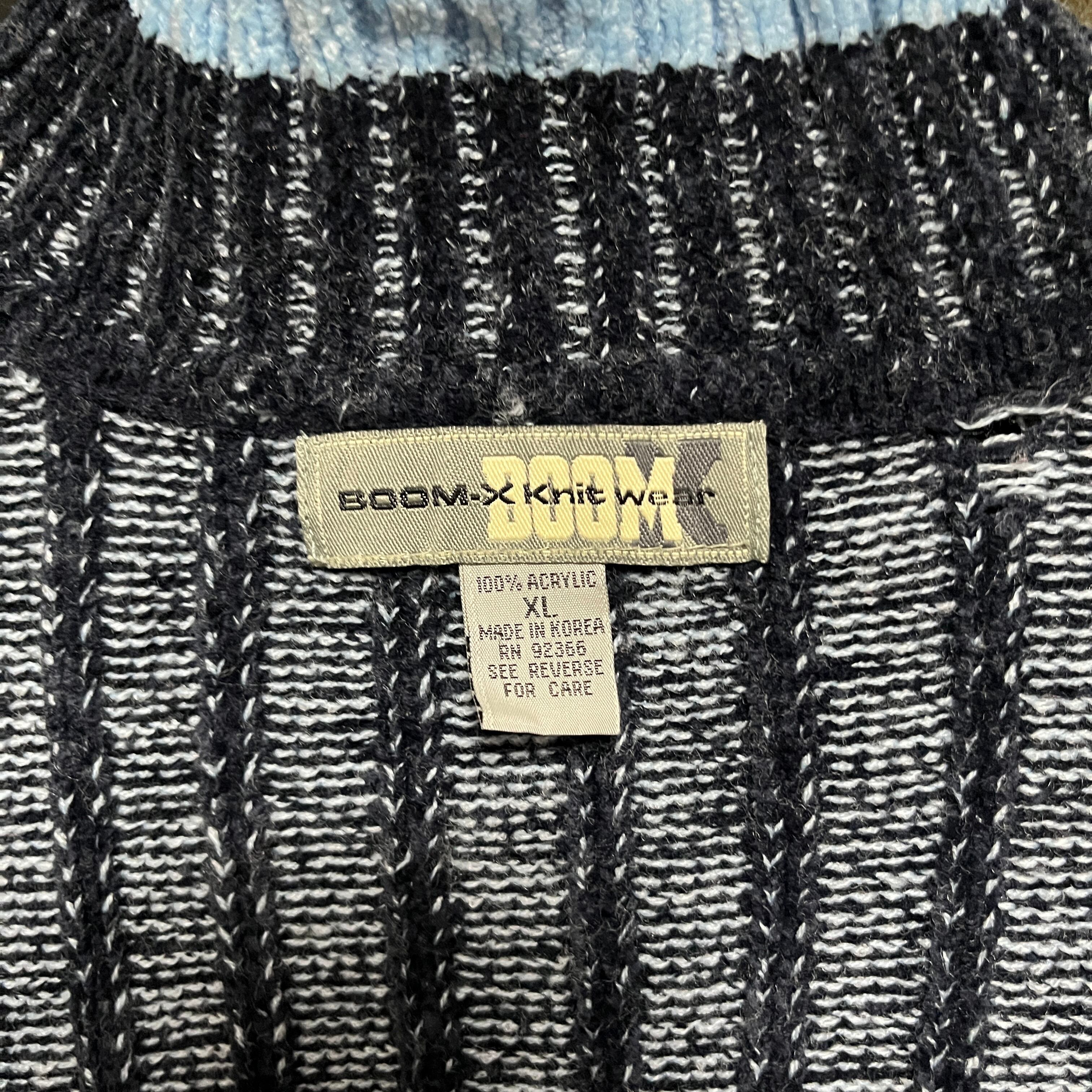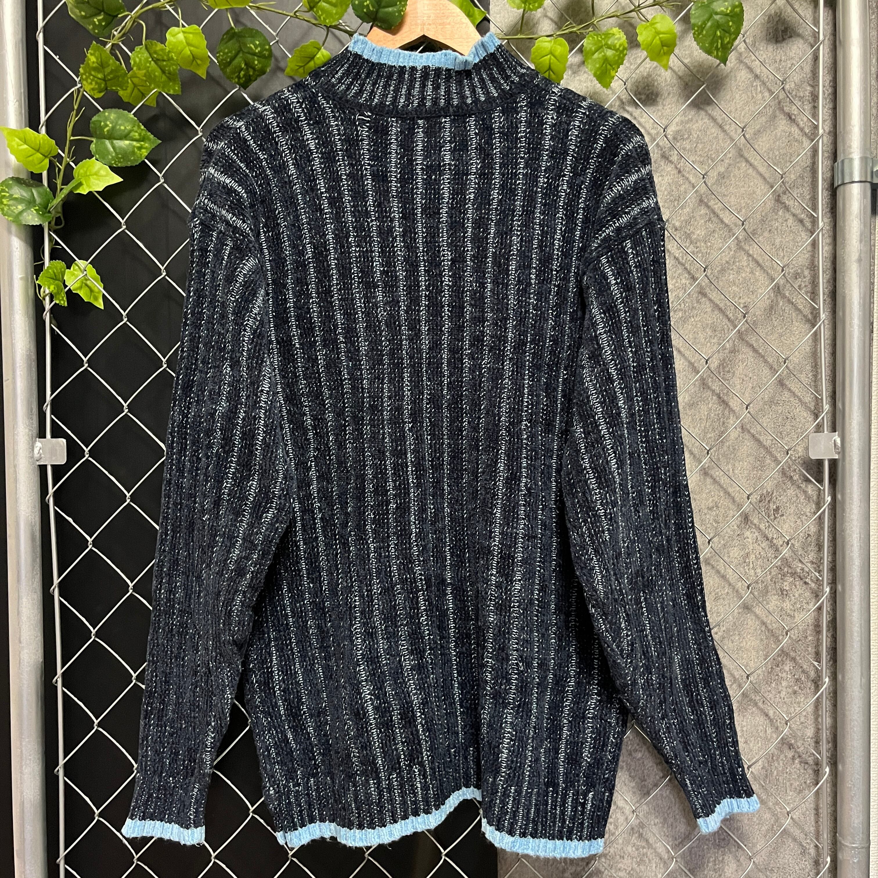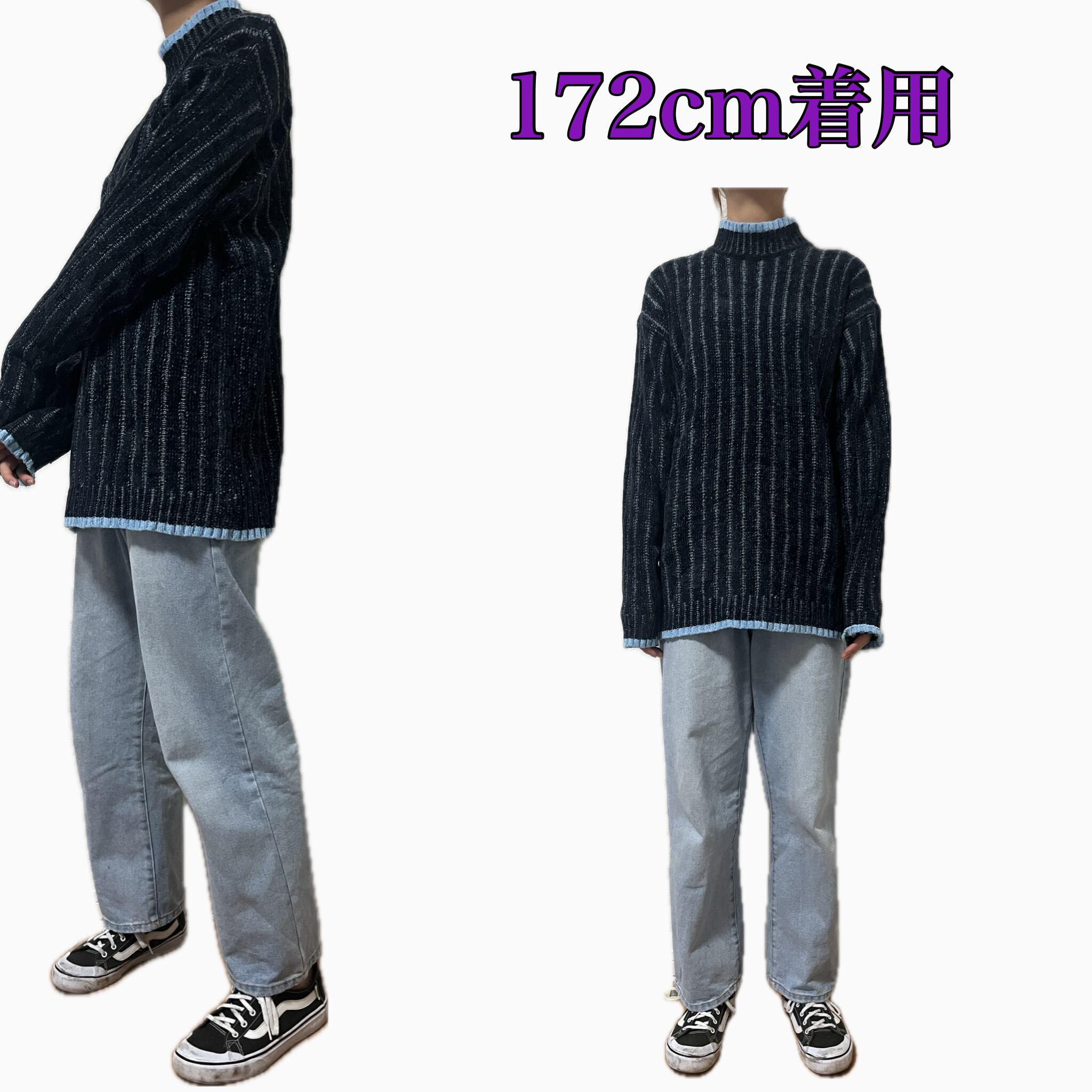 ネイビーとスカイブルーのカラーリングのストライプ柄で細見えするデザイン☺︎