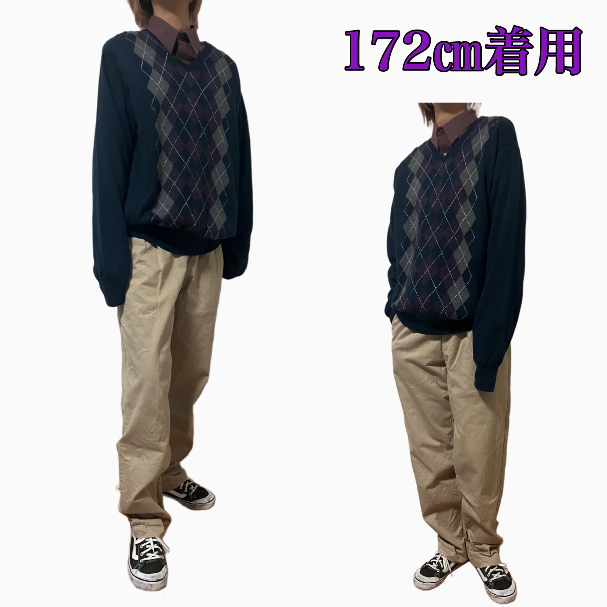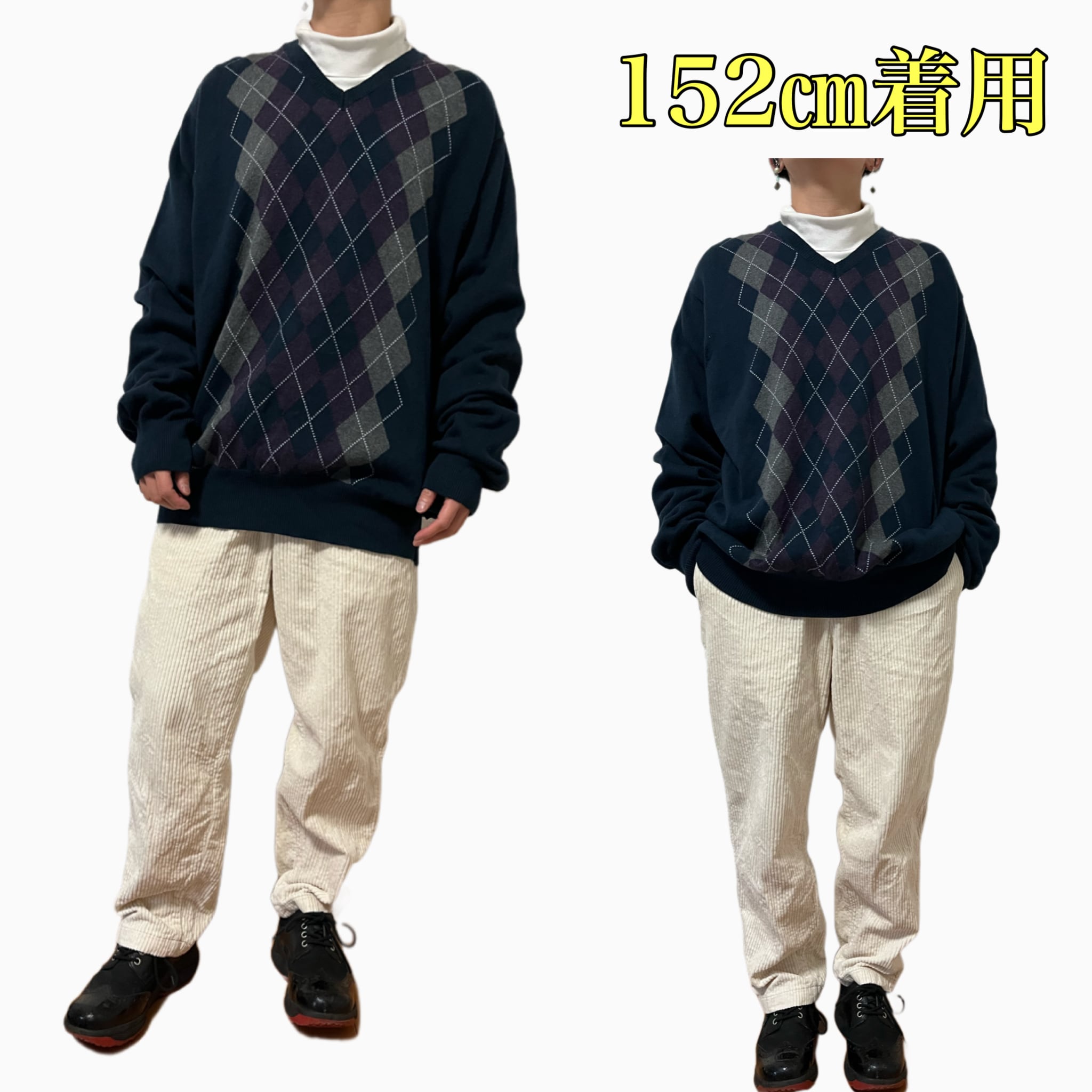 シンプルなアーガイル柄でVネックになっているので、コーデを綺麗にまとめてくれます(*´∇`*)