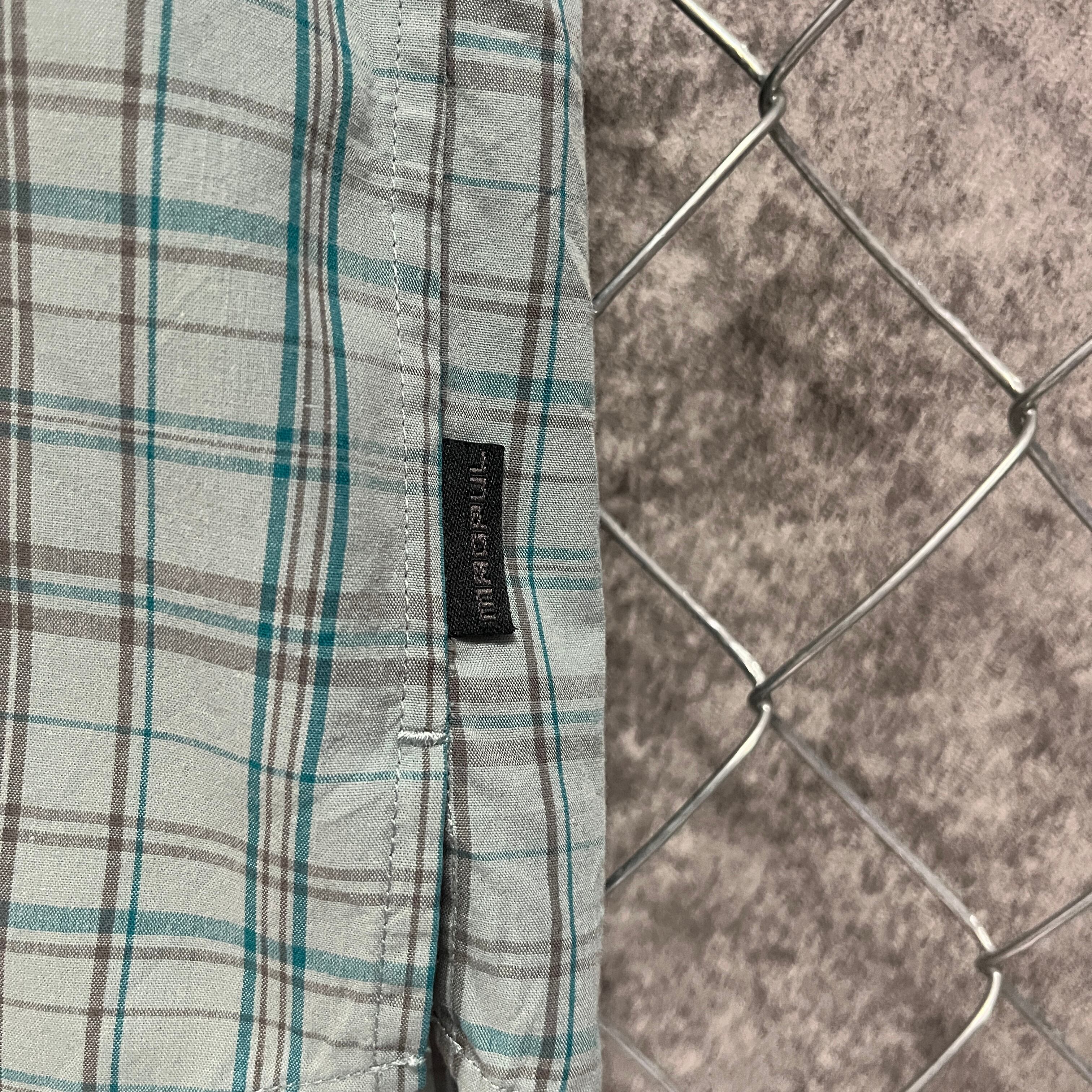 柔らかなカラーリングのチェックシャツは爽やかな印象に☺︎