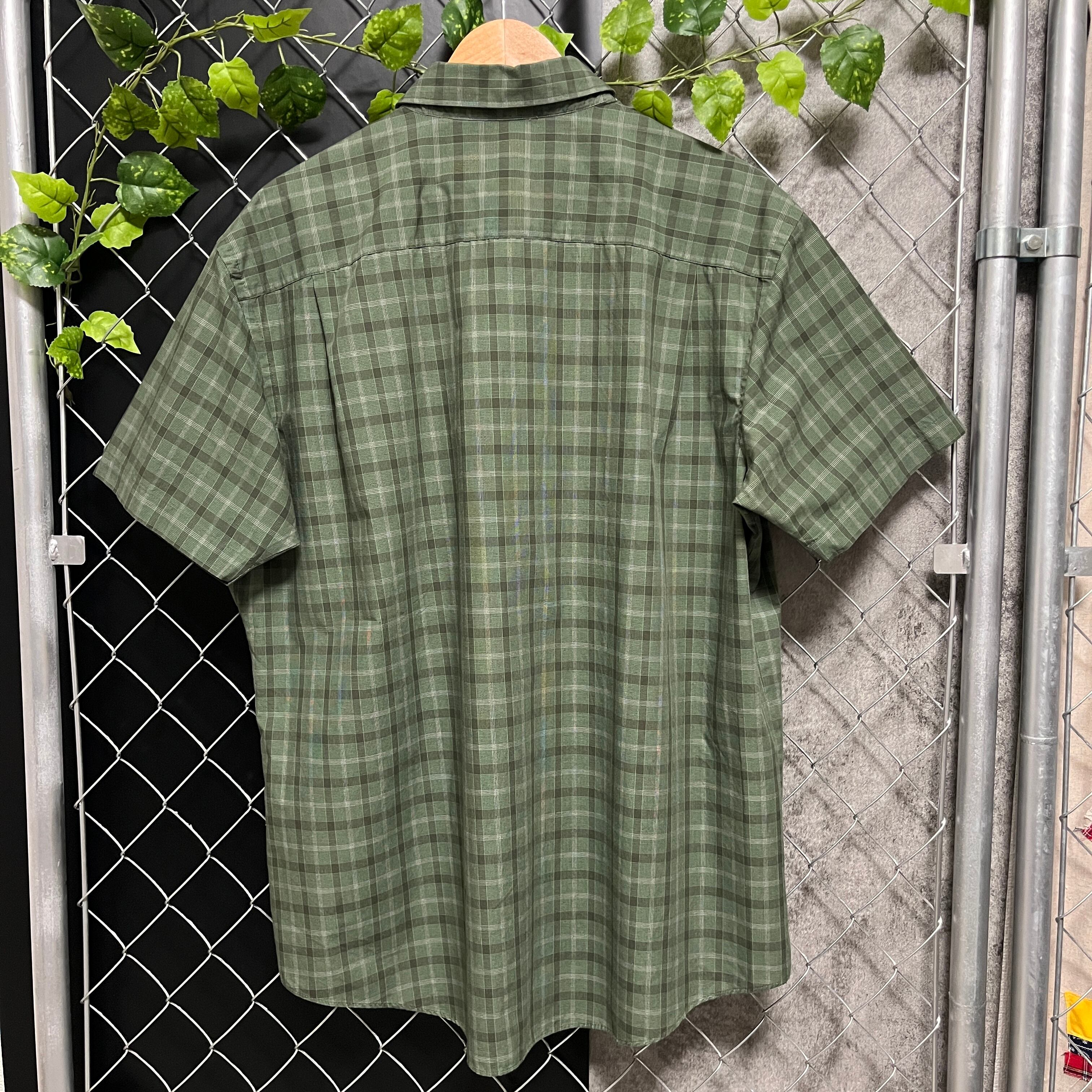 落ち着いたグリーン系のチェックシャツは大人っぽい雰囲気に☺︎