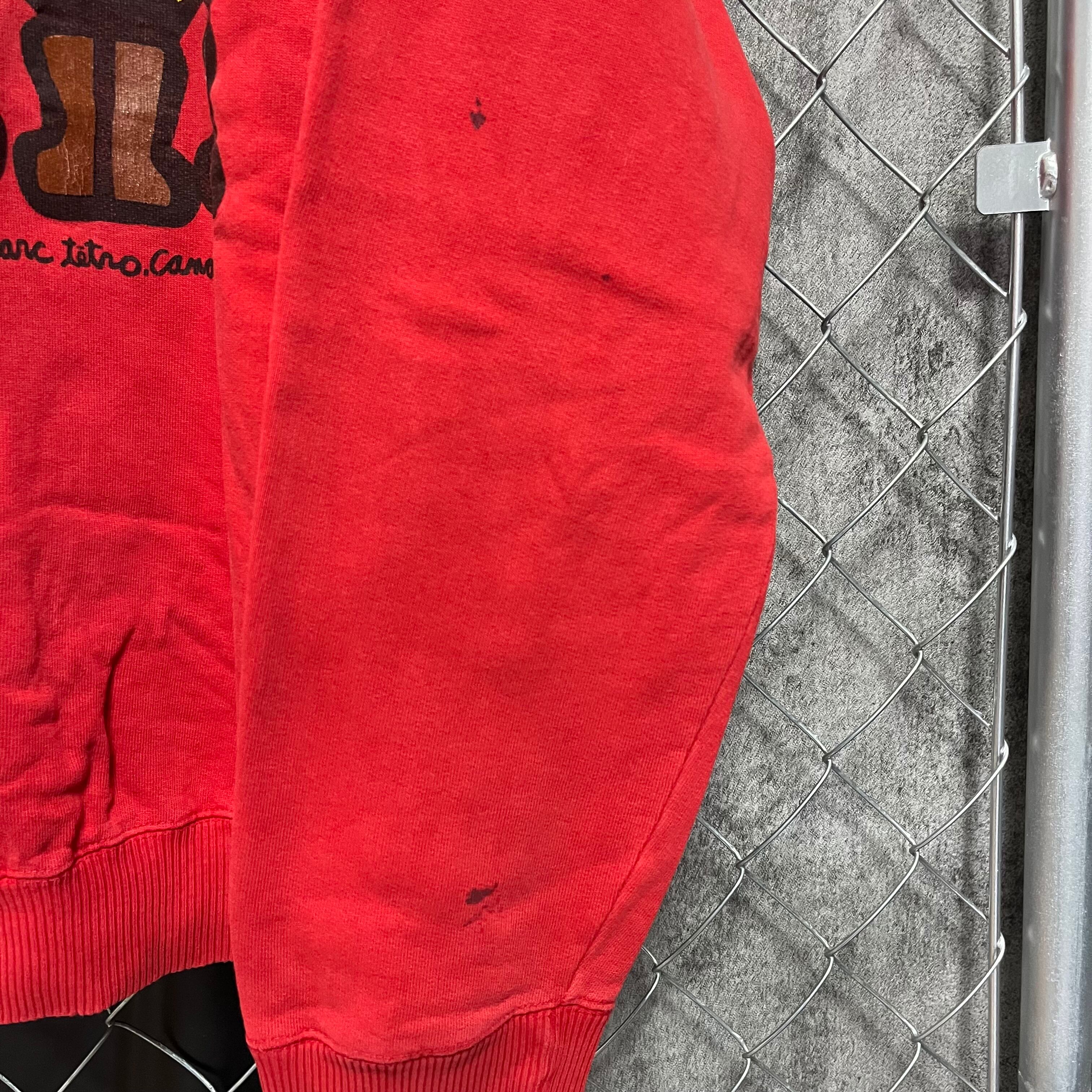 おそらく00年代のもので、プリントのヒビ割れ、インク汚れ、脱色、袖付近の穴あきがあります。
